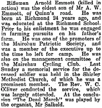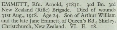 - New Zealand War Graves Project - https://www.nzwargraves.org.nz/casualties/arnold-emmett